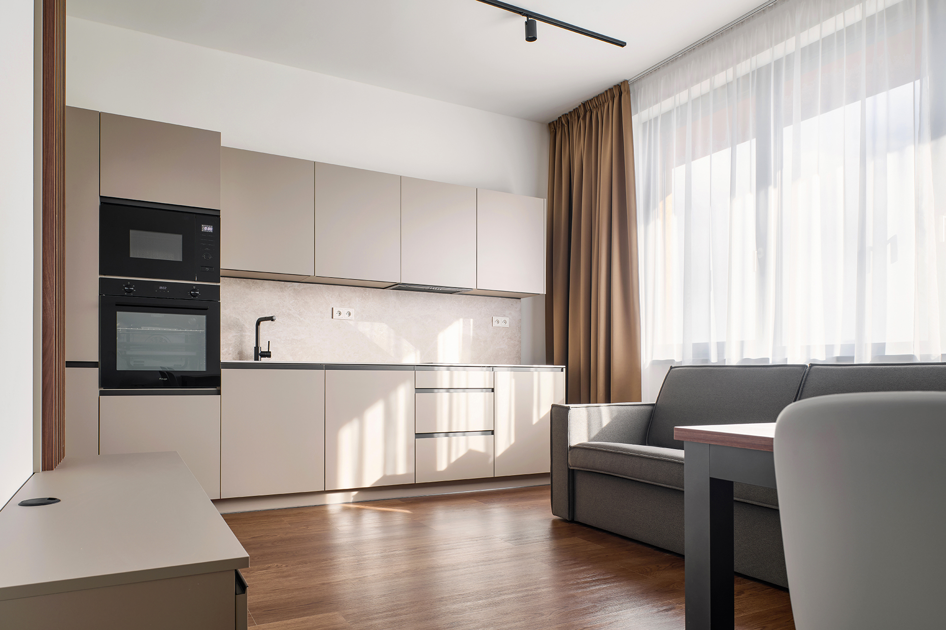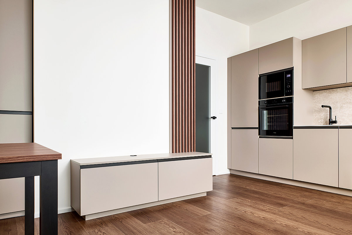 Použitá kombinace modelů SIMPLE|OPTIMA v odstínu cashmere navazuje na předchozí etapu a podtrhuje jemný, nadčasový charakter interiéru.