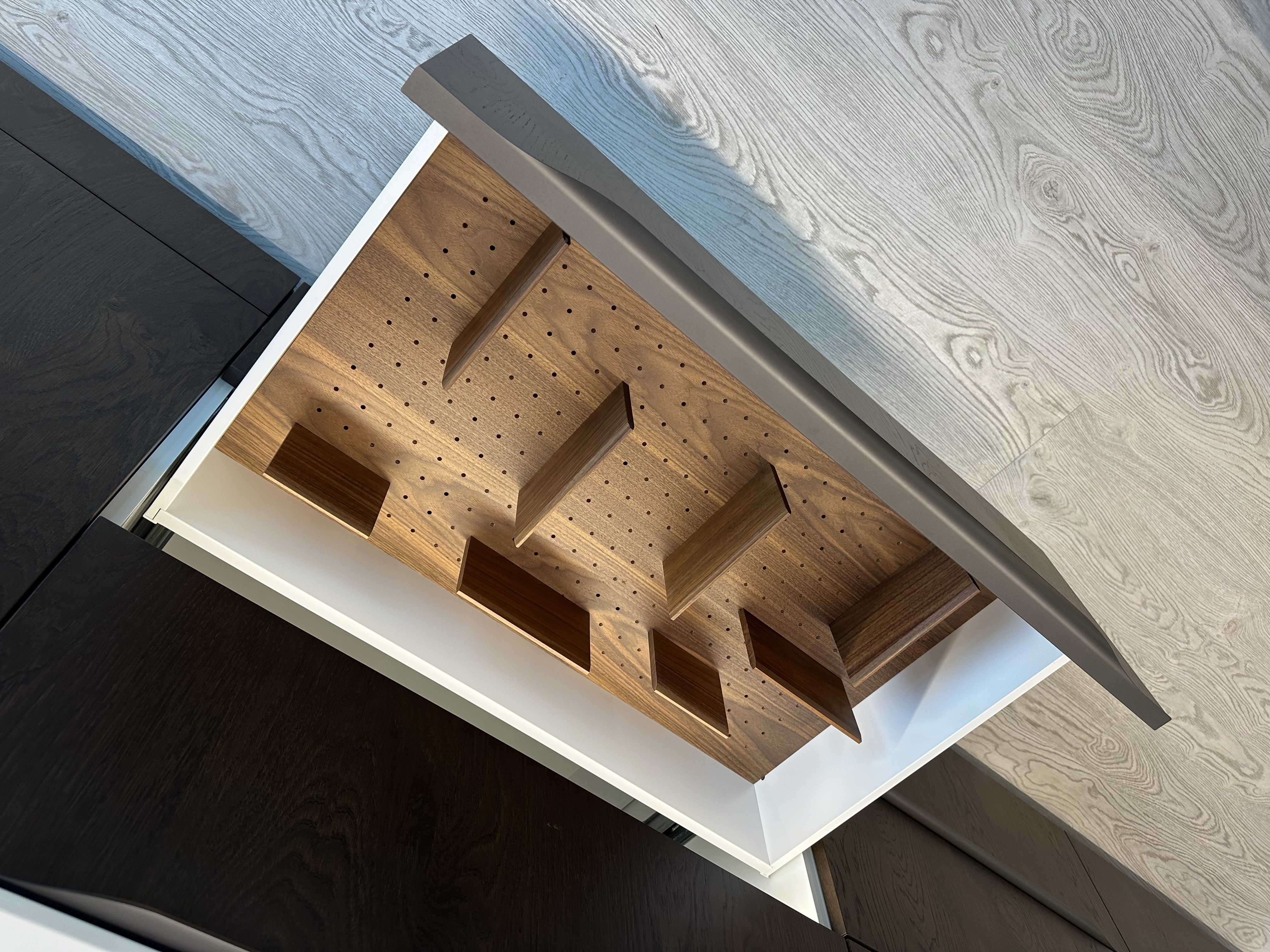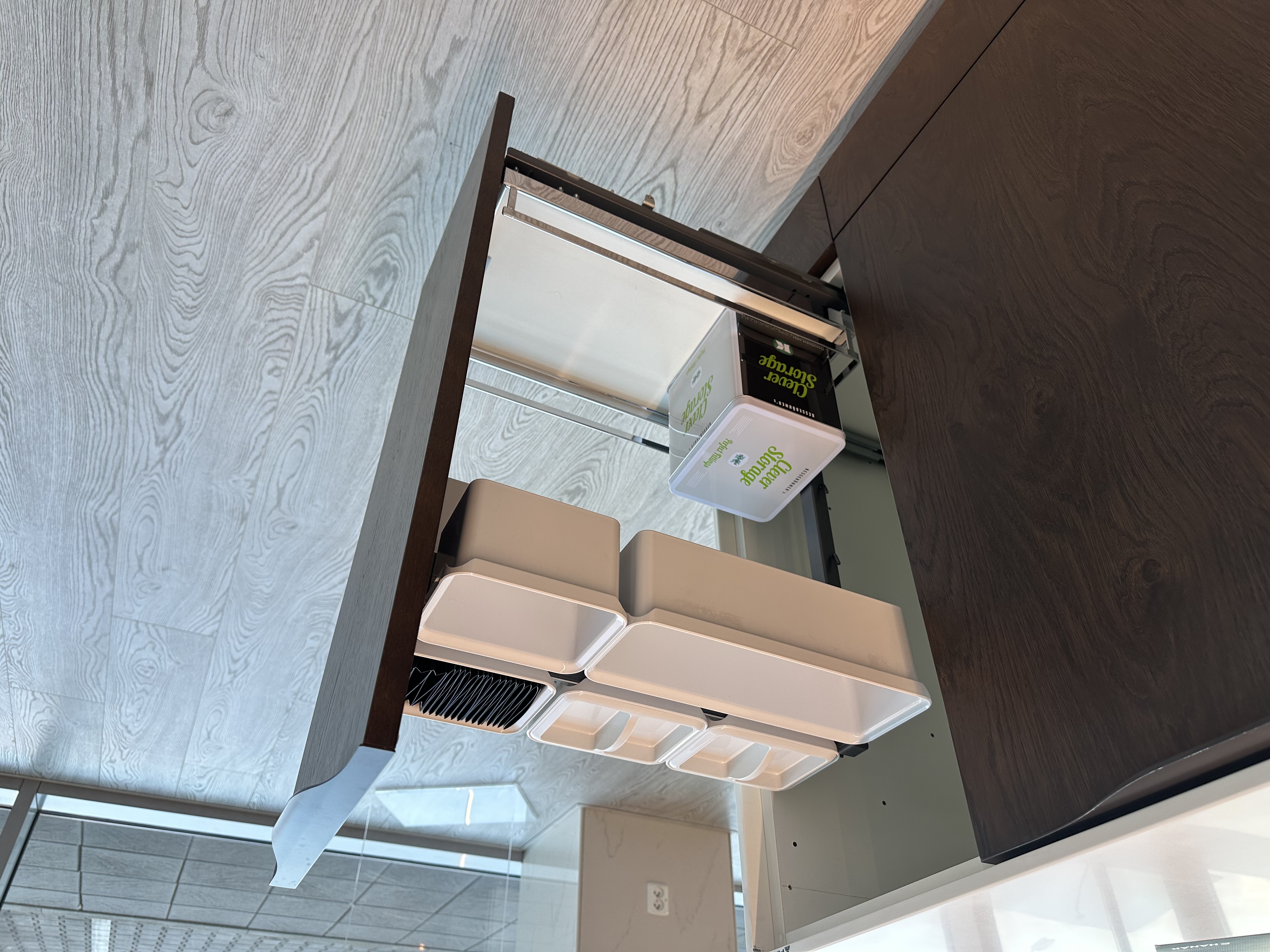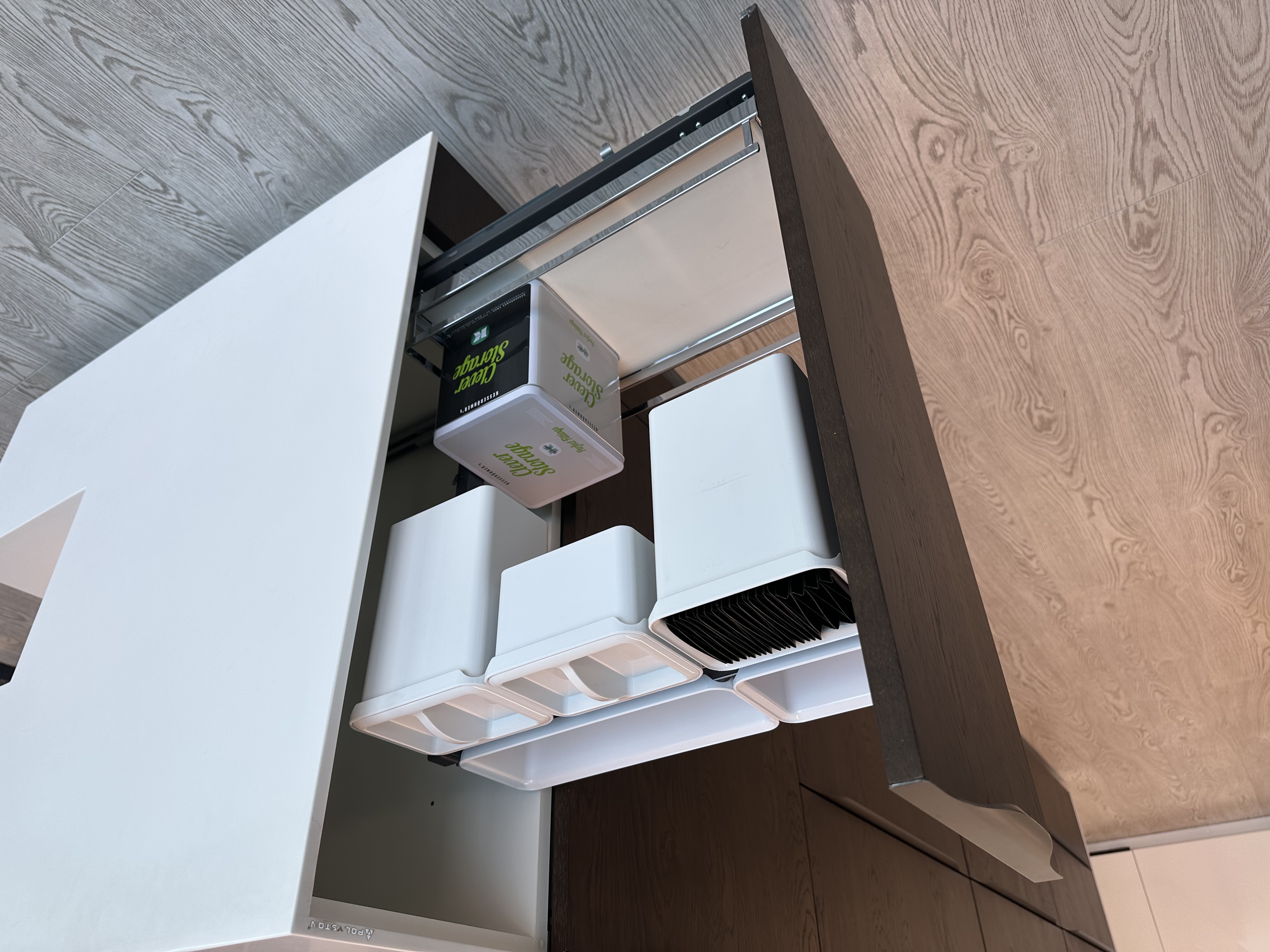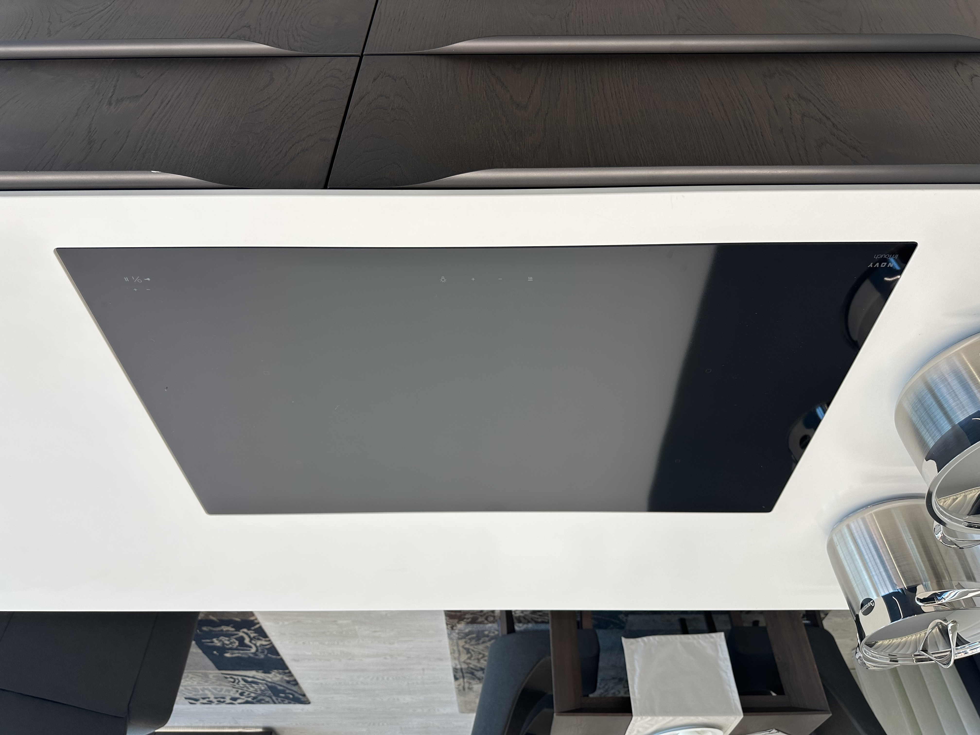 Výprodejový nábytek. Spotřebiče: kávovar siemens CT636LES1, trouba siemens HS658GXS1, lednice siemens KI87VVS30, indukce Novy intouch, odsavač Novy cloud 230, baterie blanco, myčka siemens SN65L034EU. Součástí kuchyně je systém Kessebohmer comfort 2.
