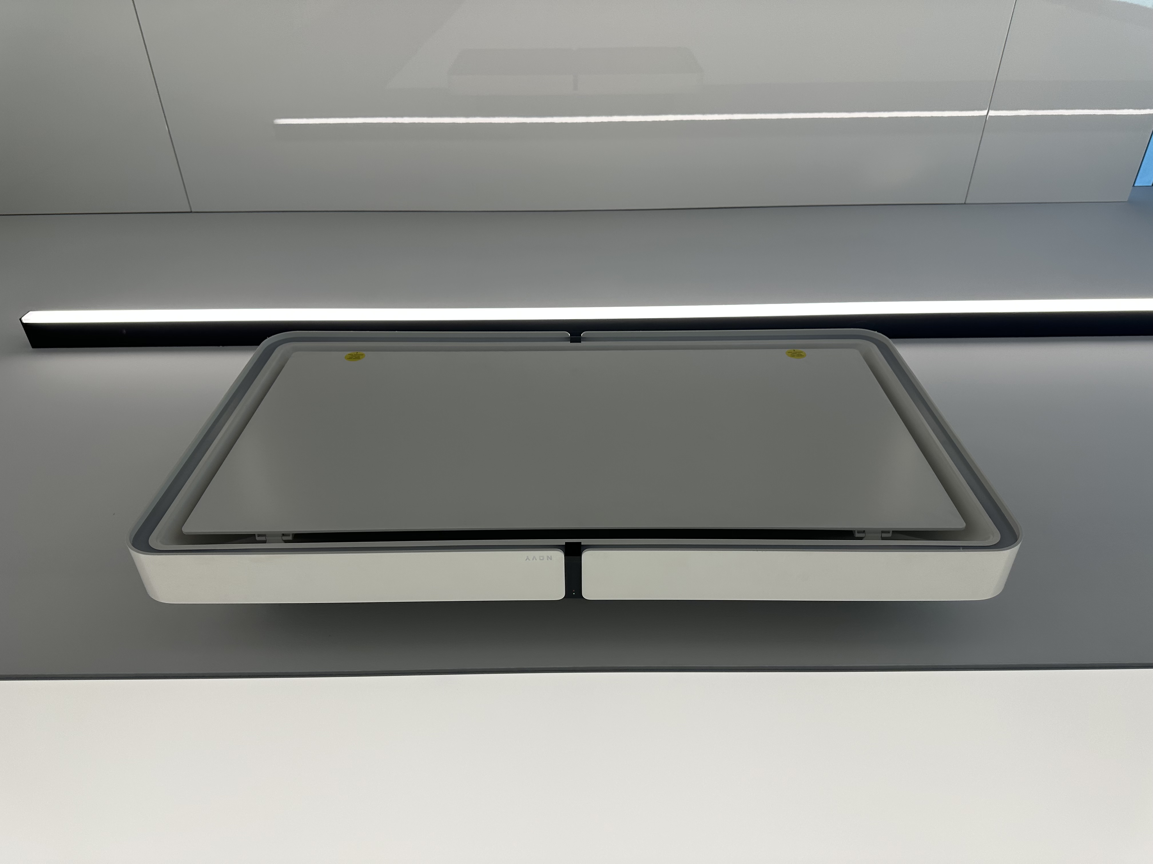 Velikost ostrůvku: výška 96cm, hloubka 94cm, délka 362cm. Velikost prosklené vitríny: délka 240cm, výška 164,5cm, hloubka 24cm. Velikost obkladu za prosklenou vitrínou: hloubka 4cm, výška 280cm, šířka 402,5cm. Velikost druhého obkladu: šířka 34,5cm, délka 360cm, výška 280cm.