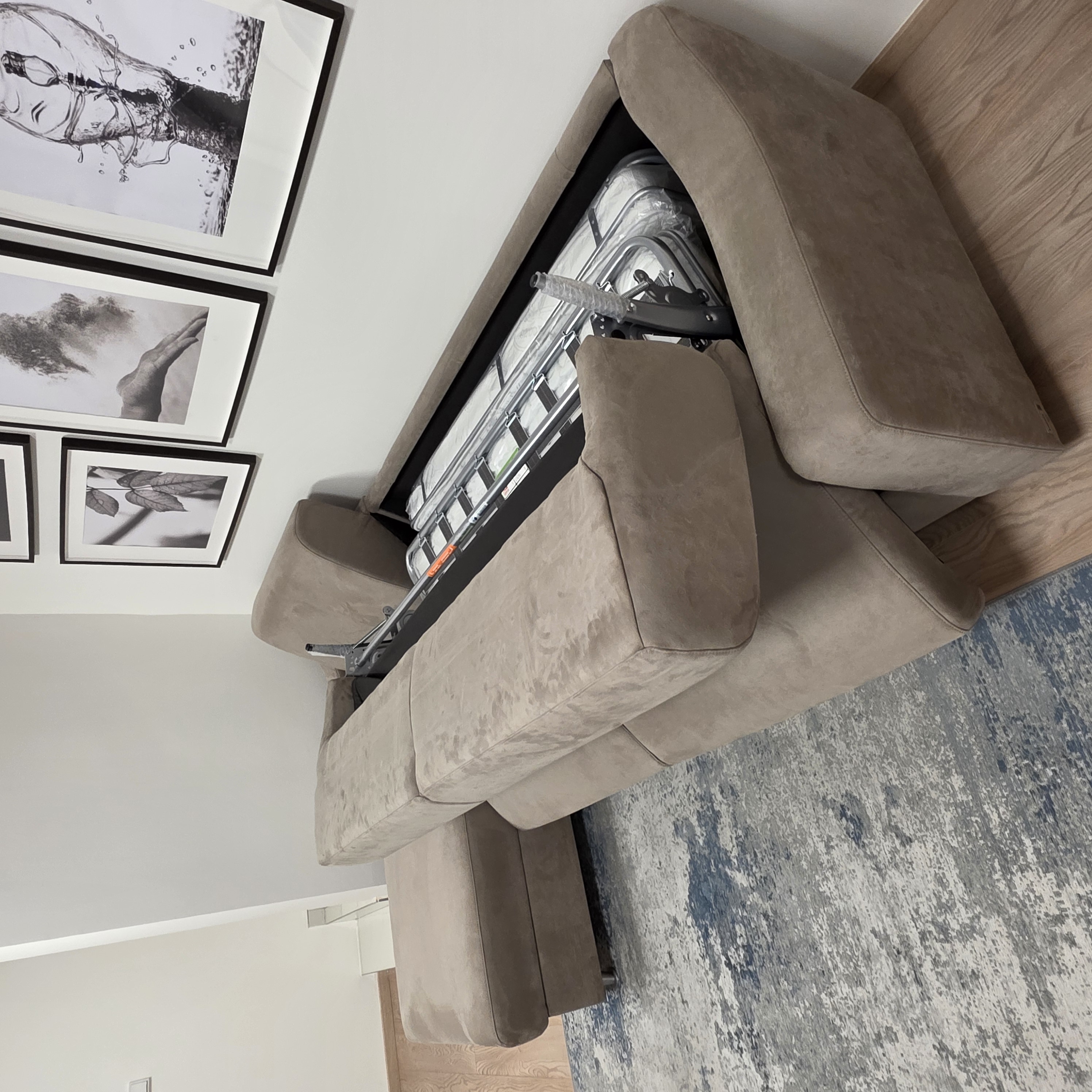 Rozměr sedačky: 277x170 cm. Matrace na spaní: 140x197 cm.